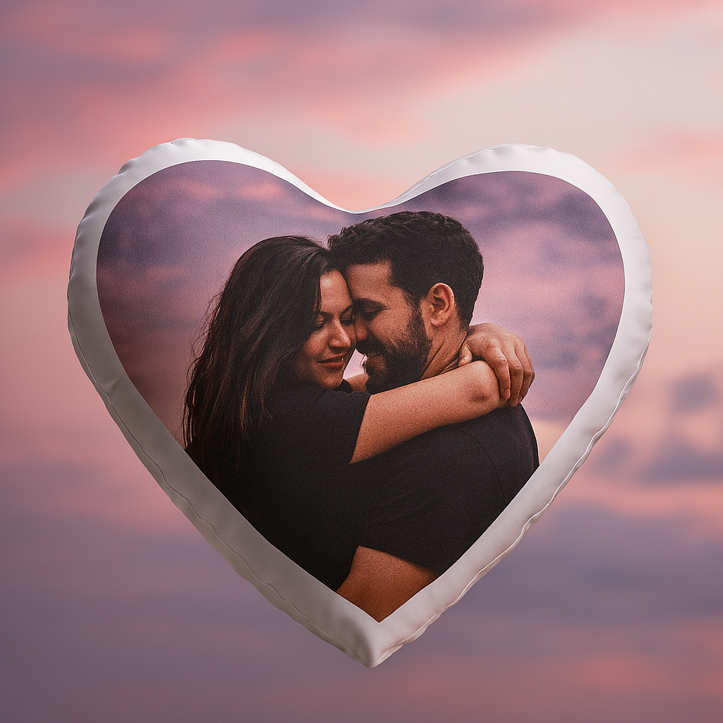 Dekoratives Kissen in Herzform, inkl. Bezug und Füllung, einseitig bedruckt (1 Stück)
