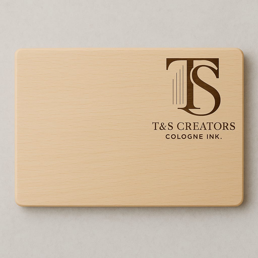 Ihre Wunschtexte, Logos oder Grafiken werden mittels modernster Lasertechnik tief in das Holz eingebrannt. Dies erzeugt einen satten, dunklen Kontrast zum hellen Holz, der dauerhaft sichtbar und abriebfest ist.